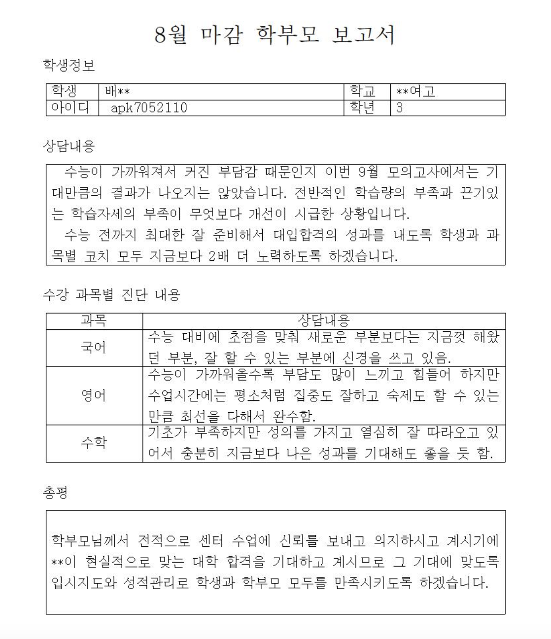 성적은 오를 수밖에 없습니다.